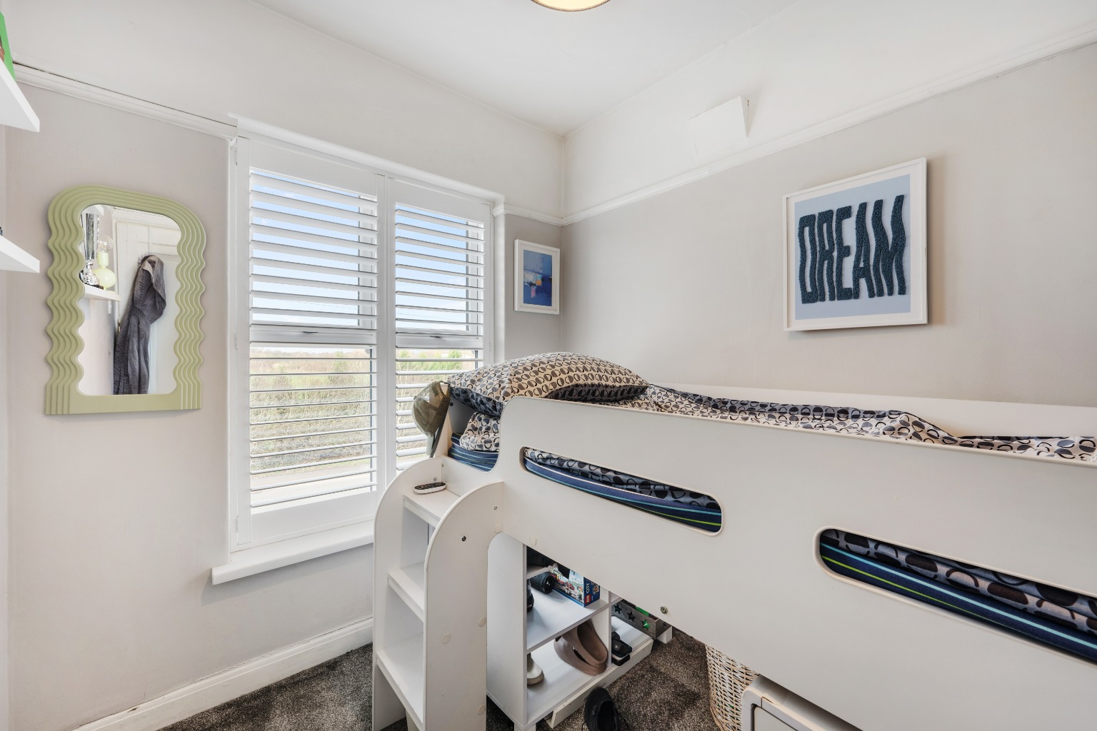 Upstairs, the house comprises three well-proportioned bedrooms, offering ample space for a growing family. These rooms are served by a well-maintained bathroom.