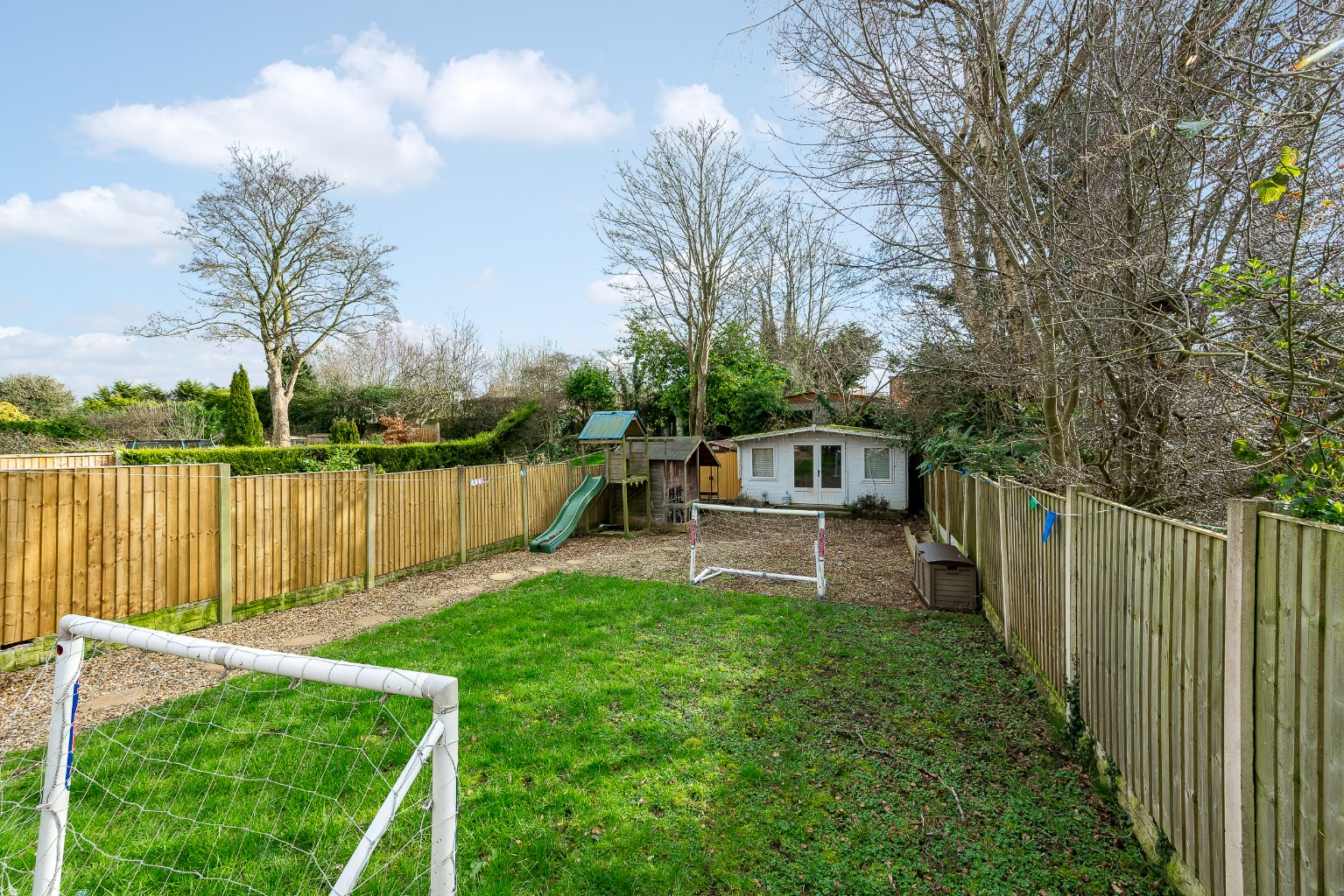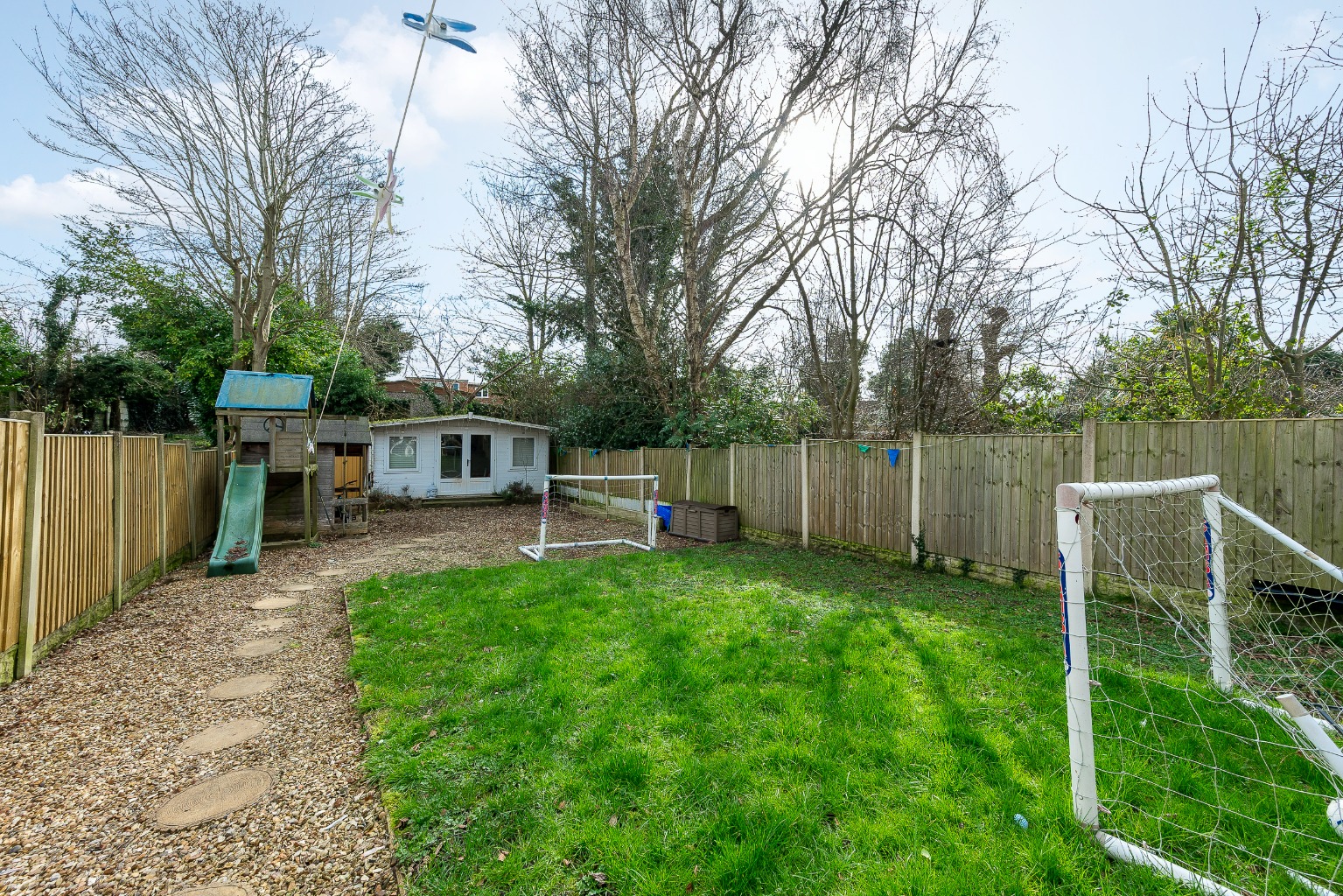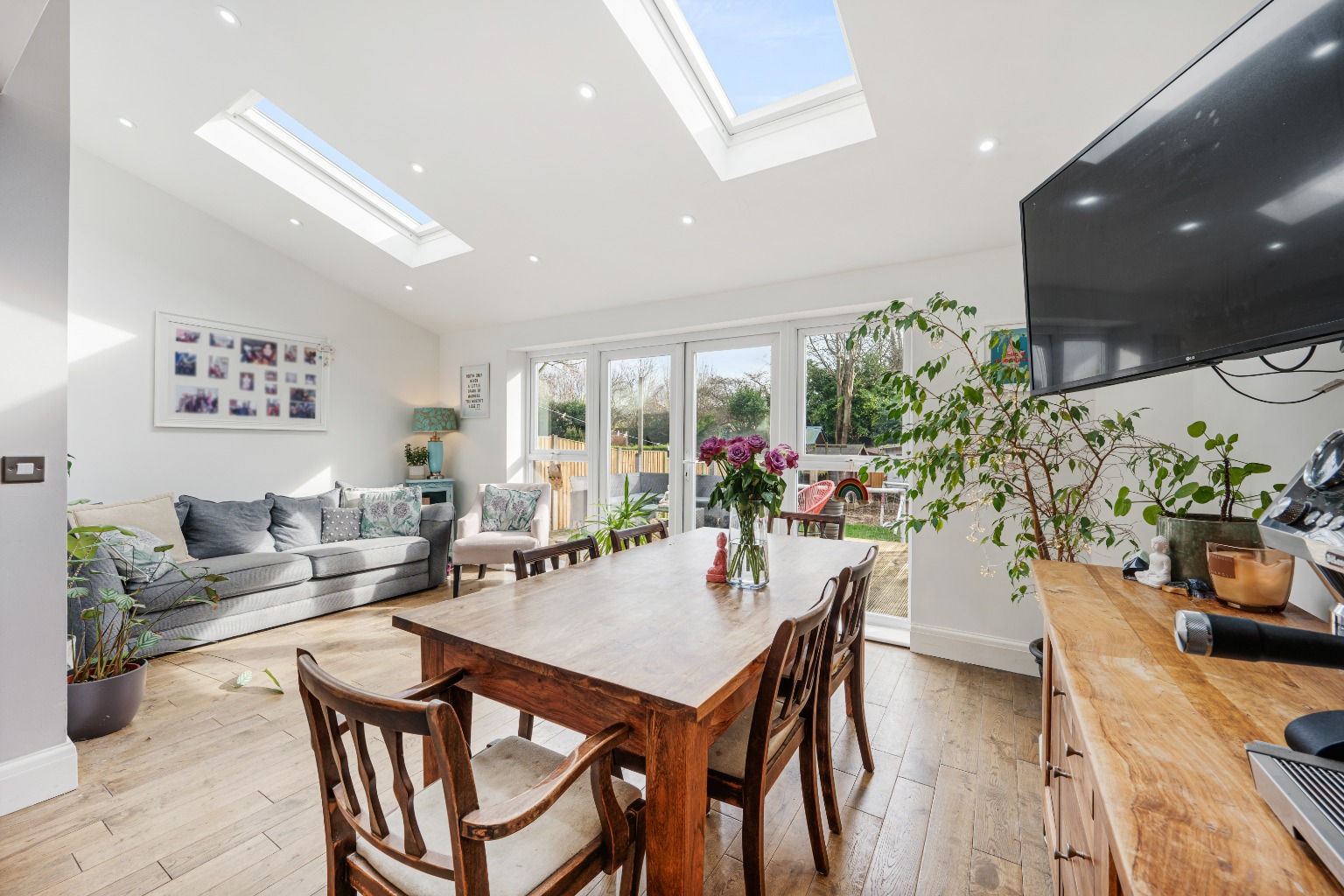 Externally, the property truly shines with its large private garden, providing a secure and expansive outdoor space for children to play, for entertaining guests, or simply for quiet enjoyment. A notable addition is the garden room, a versatile space that could serve as a home office, a playroom, or an additional reception area, offering flexibility to suit various family needs. The front of the property provides convenient driveway parking, accommodating multiple vehicles.