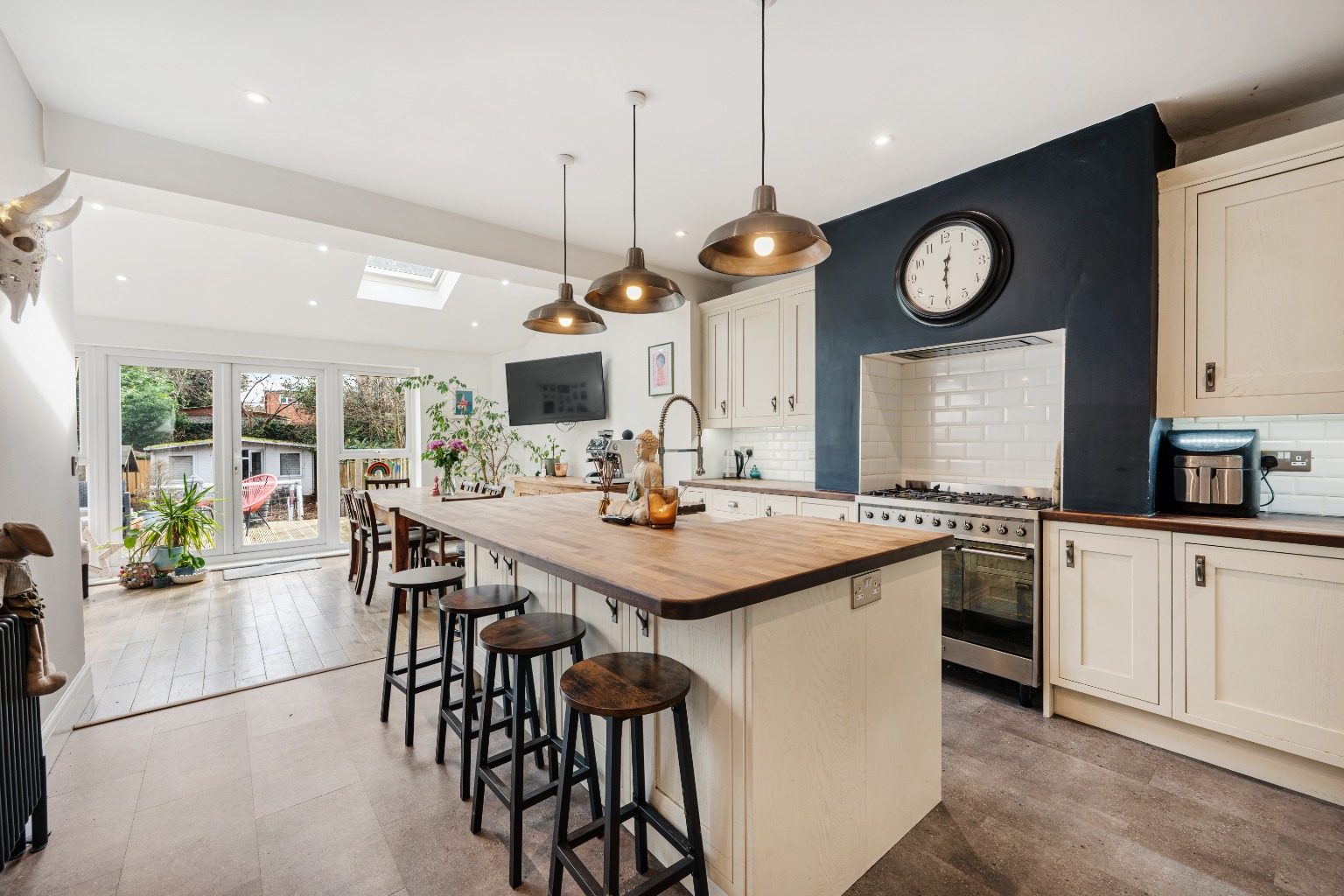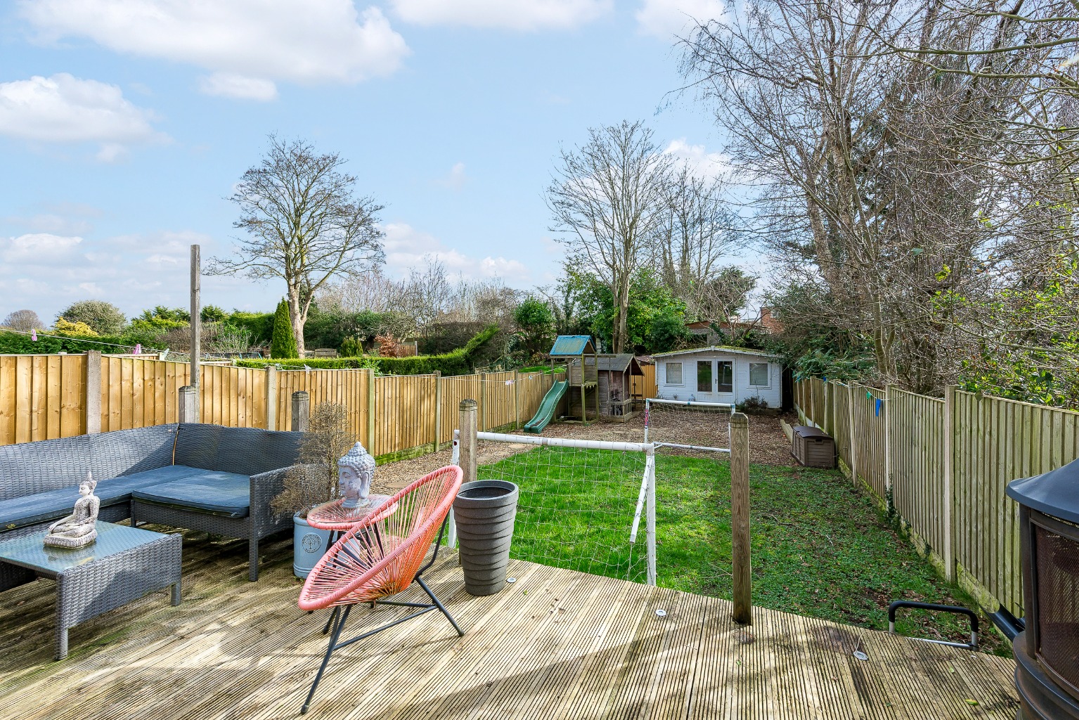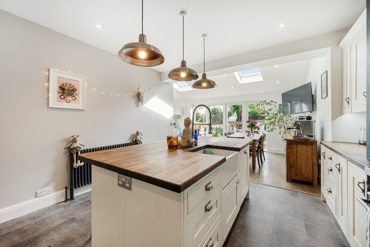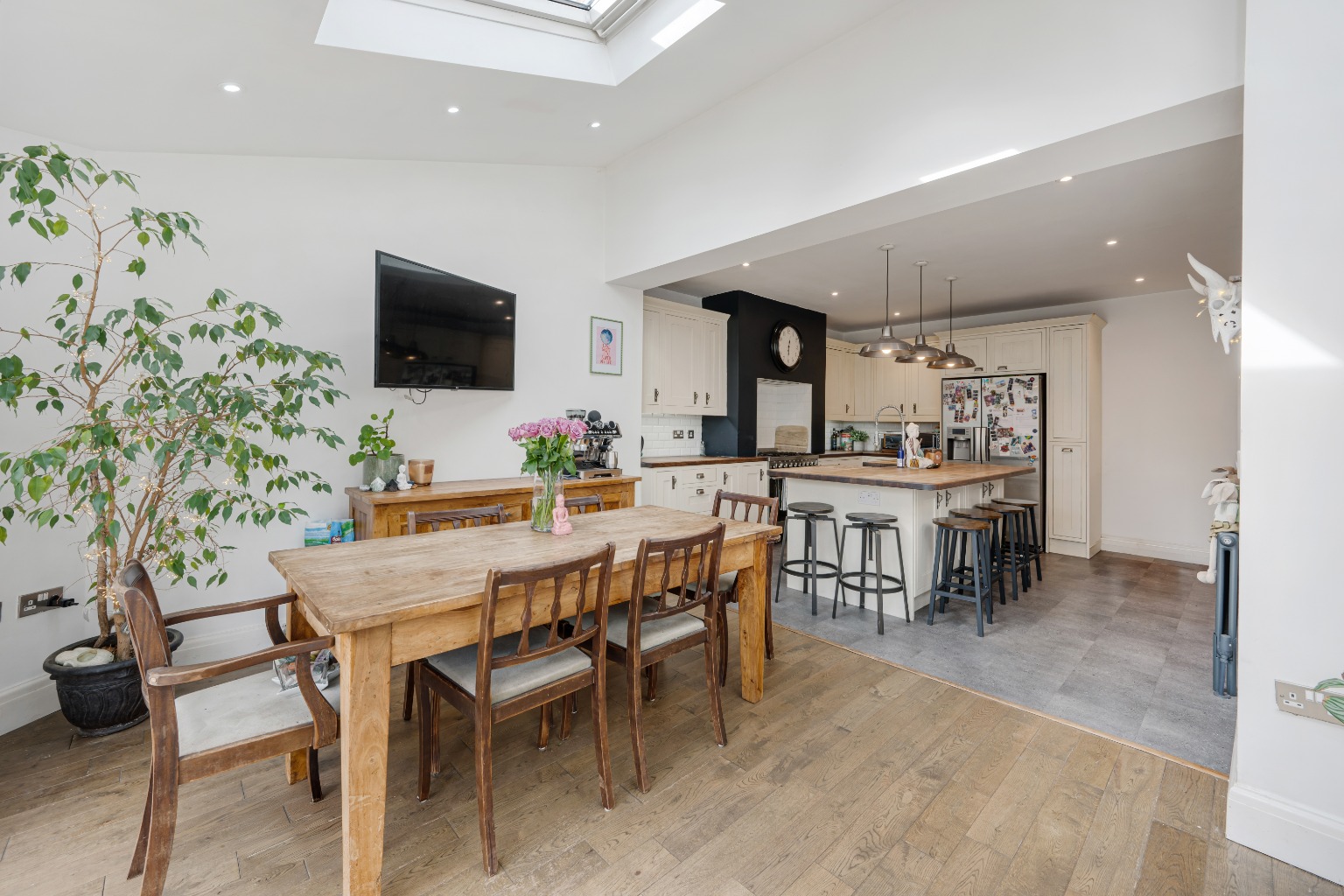 Externally, the property truly shines with its large private garden, providing a secure and expansive outdoor space for children to play, for entertaining guests, or simply for quiet enjoyment. A notable addition is the garden room, a versatile space that could serve as a home office, a playroom, or an additional reception area, offering flexibility to suit various family needs. The front of the property provides convenient driveway parking, accommodating multiple vehicles.